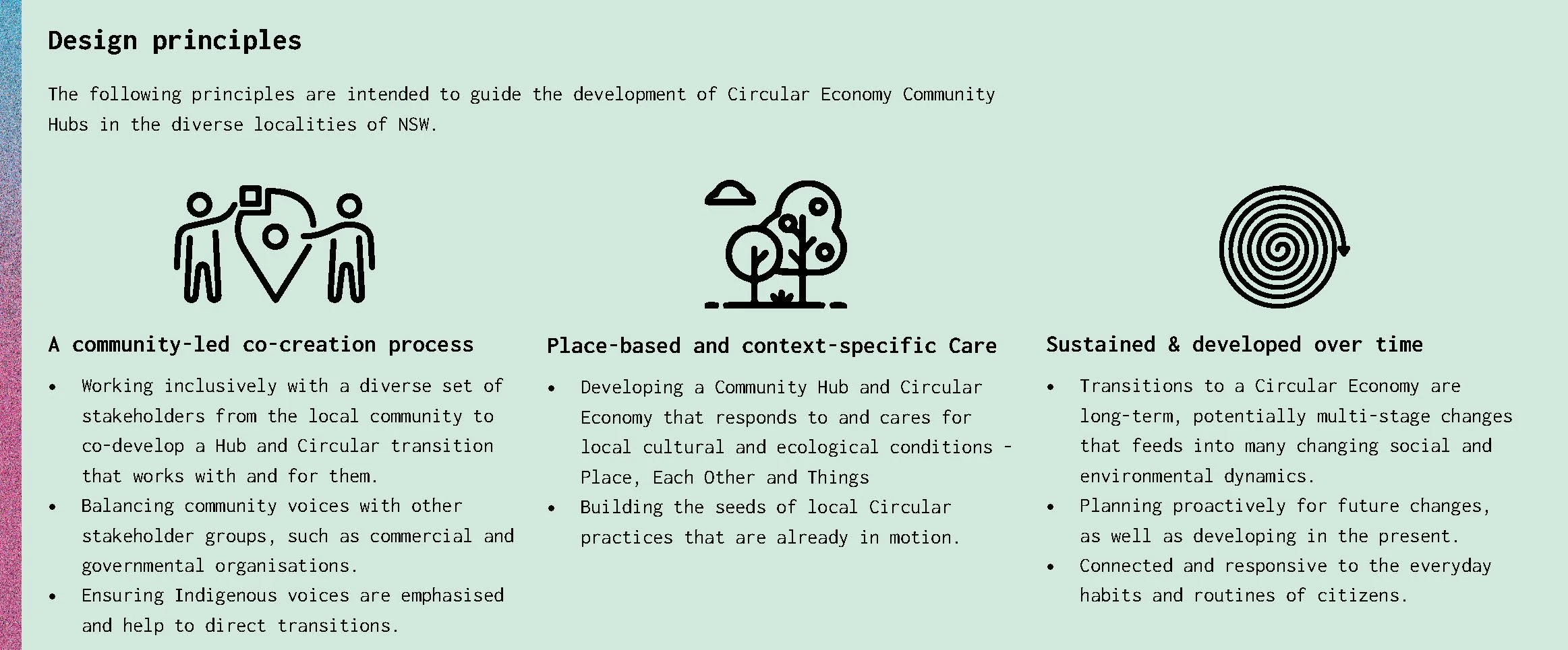 It was clear that every Place had its own unique way in transitioning to a circular future, and therefore needed a unique co-designed approach to engaging and supporting them. We developed a process and governance model to help communities on that path.