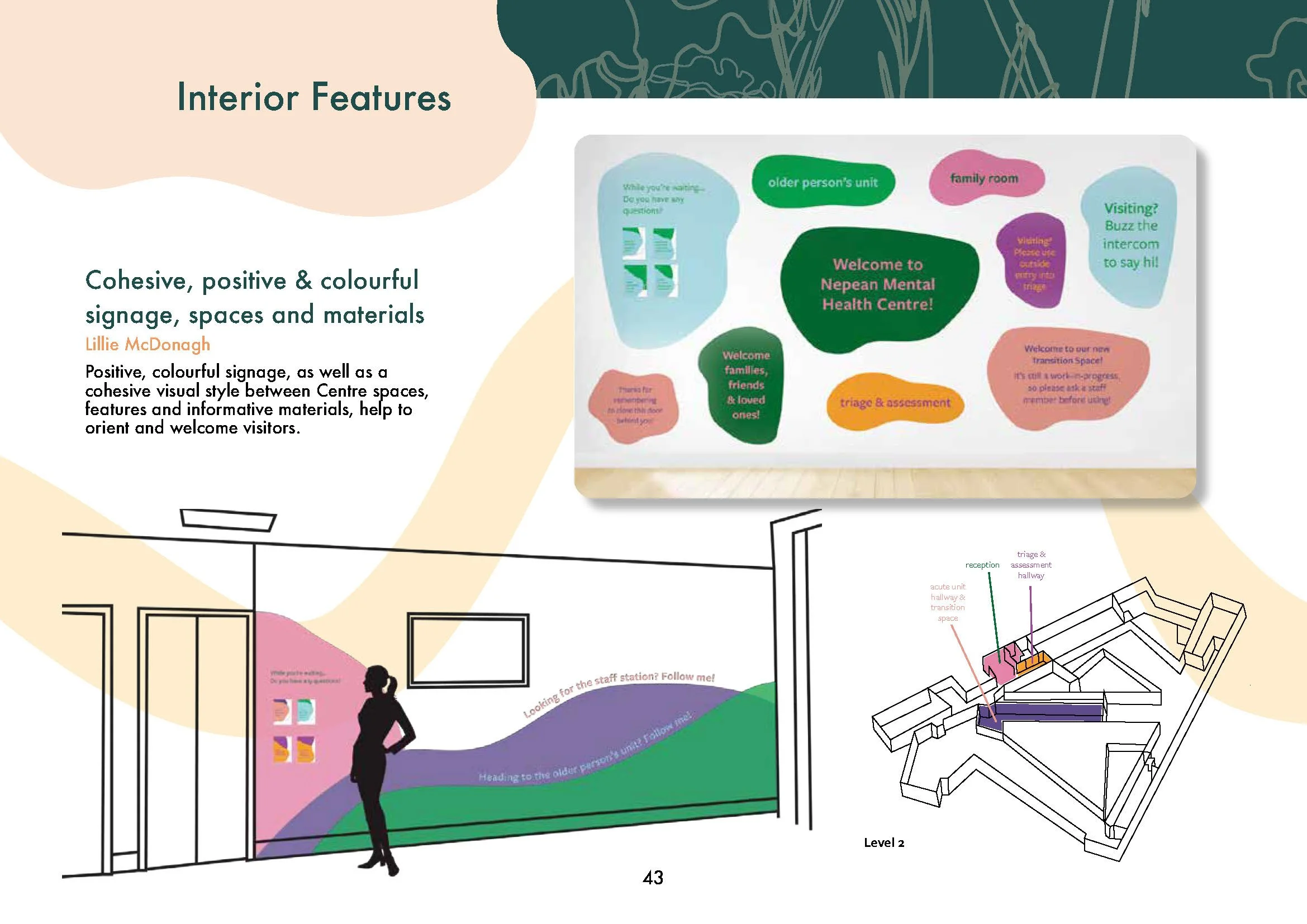 Together we co-developed new philosophies of care, designed more therapeutic interior and exterior environments, embedded a culture of co-design and engagement, envisioned new family therapy services. and explored how to design and deliver better virtual care for their Local Health District.