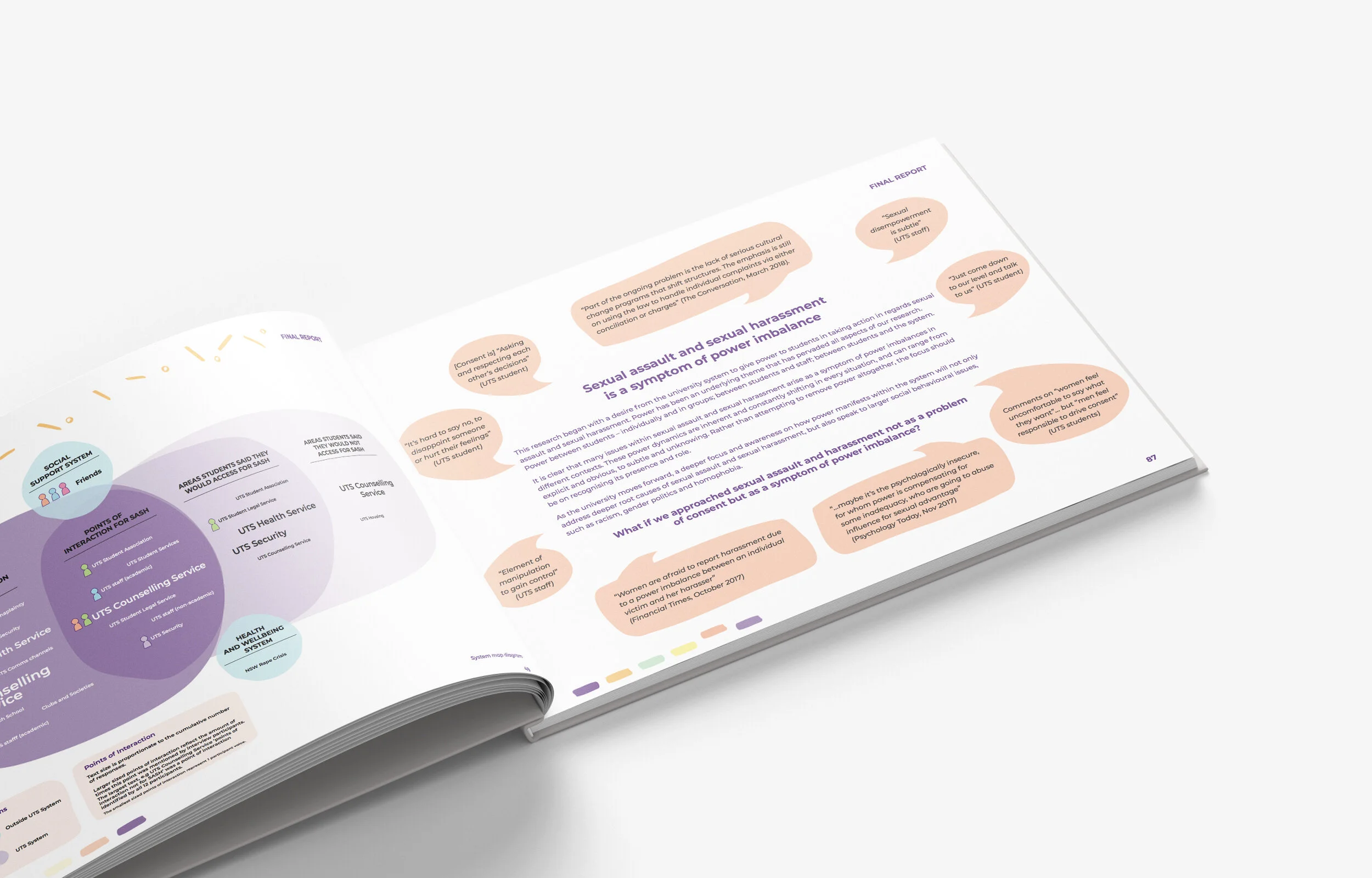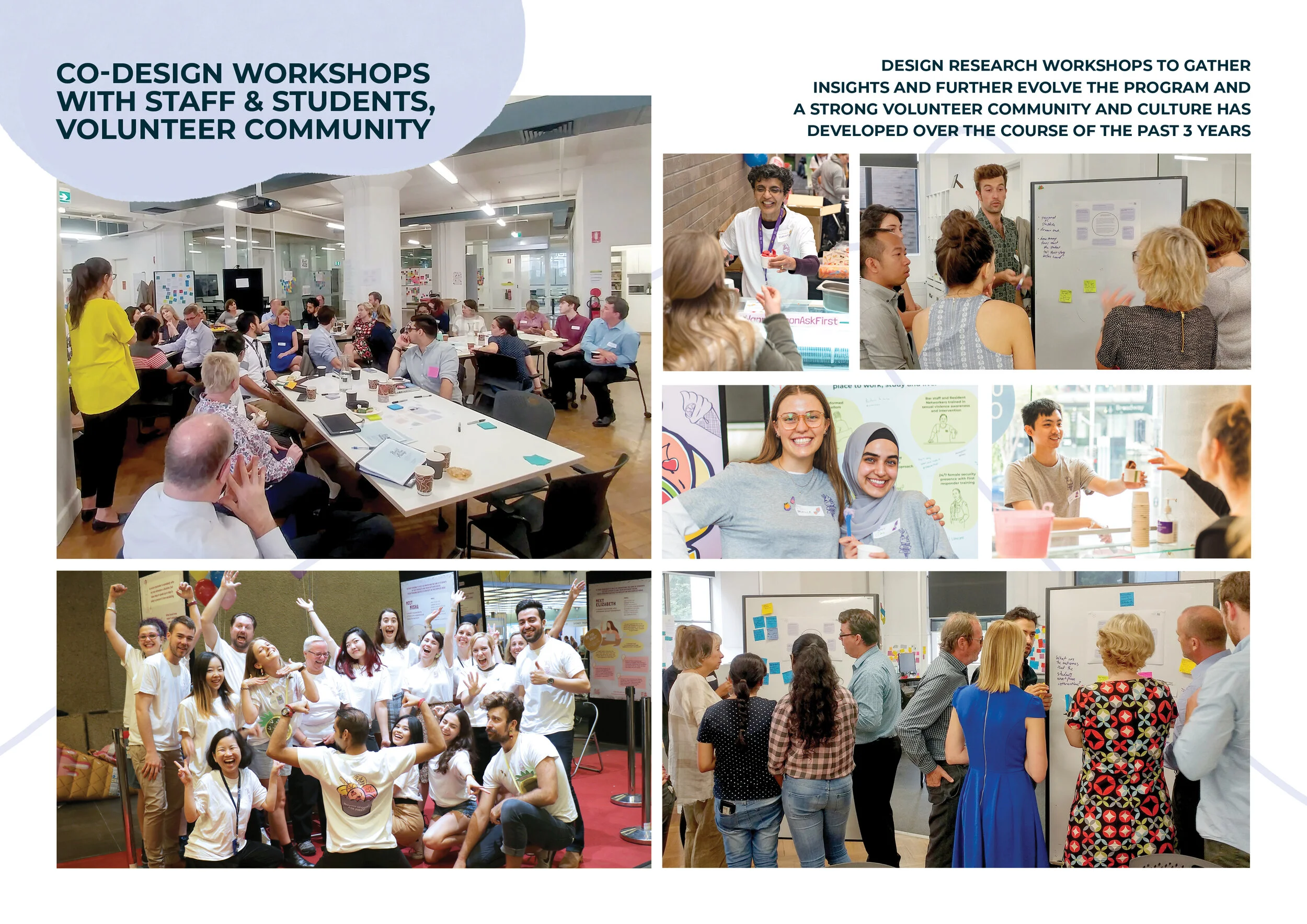 The co-design approach increases community engagement and ownership. Students have often indicated that they feel they have an increased voice in the system. Almost 400 students and staff volunteered to help run and evolve the activations and several community-led prevention initiatives have been implemented. The high levels of participation in campaign activations, positive responses, and appetite for community ownership of a campaign focussed on such a difficult topic highlight the positive impact that design can have on social, cultural and organisational change.